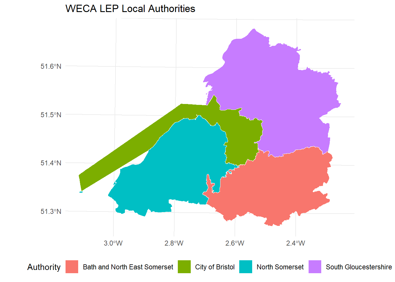 WHERE CAUTH25NM = 'West of England';R equivalent: df |> filter(CAUTH25NM == "West of England")